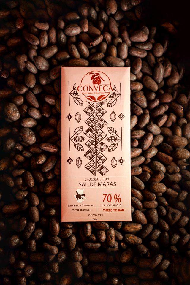 Tableta de chocolate 70% cacao chuncho, sal de maras, azúcar orgánica y manteca de cacao.