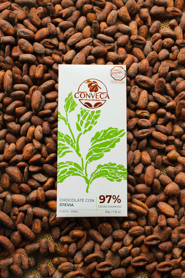 Tableta de chocolate 97% cacao chuncho, stevia y manteca de cacao.