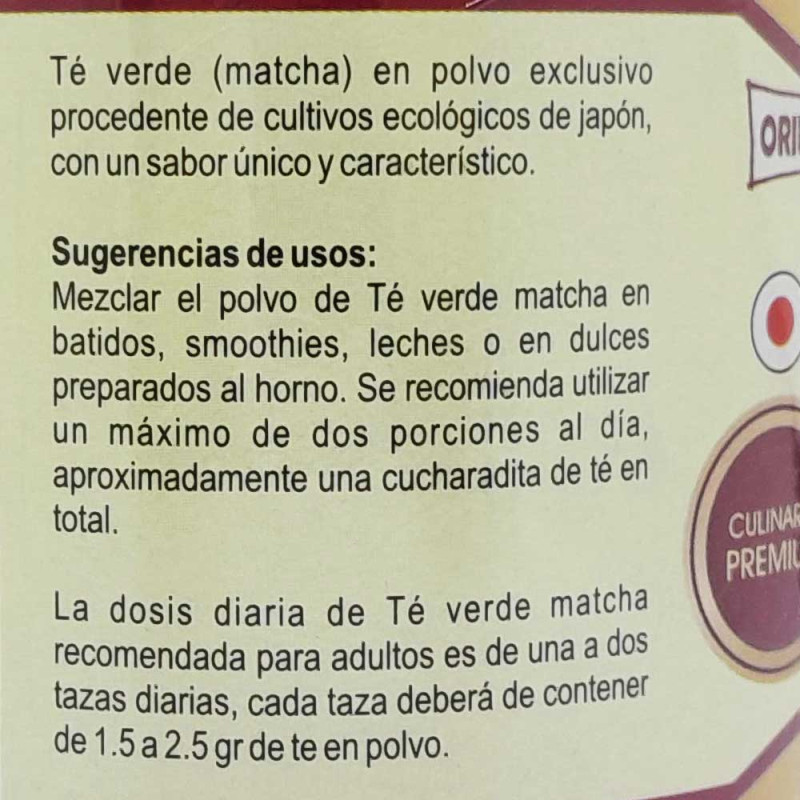 Té verde Matcha Culinario Premium x 150 g – Oriundos